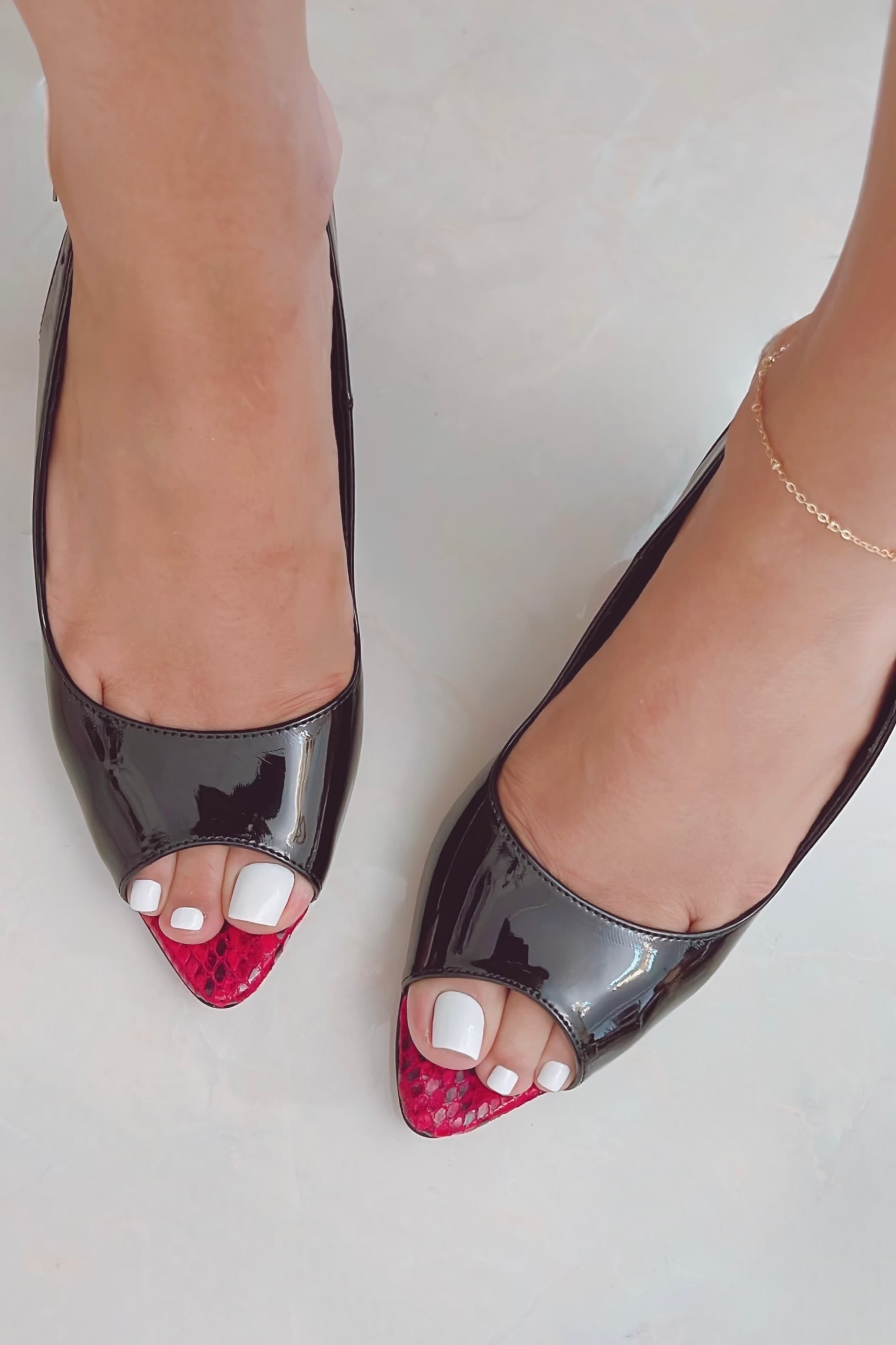 کفش مجلسی زنانه مدل پشت باز ، کفش باکیفیت، کفش مشکی-قرمز، پاشنه بلند پهن . کفش مجلسی جلوباز، کفش پوست ماری، زیره دافوس بهترین زیره موجود.